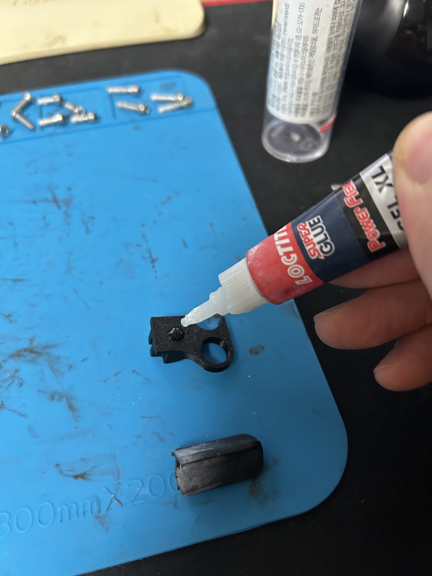 본체와 맞닿는 면에 순간접착제를 붙여준다. 한방울정도면 충분하다.