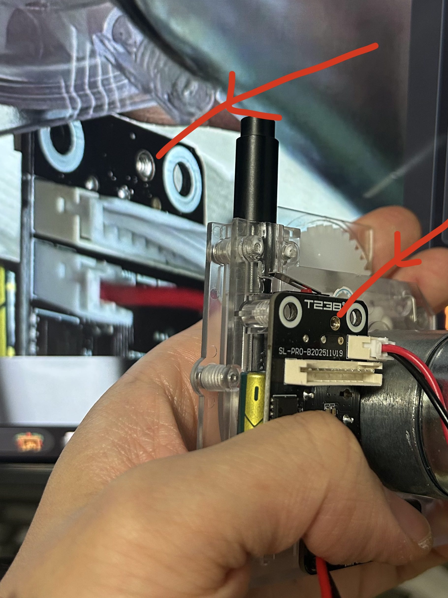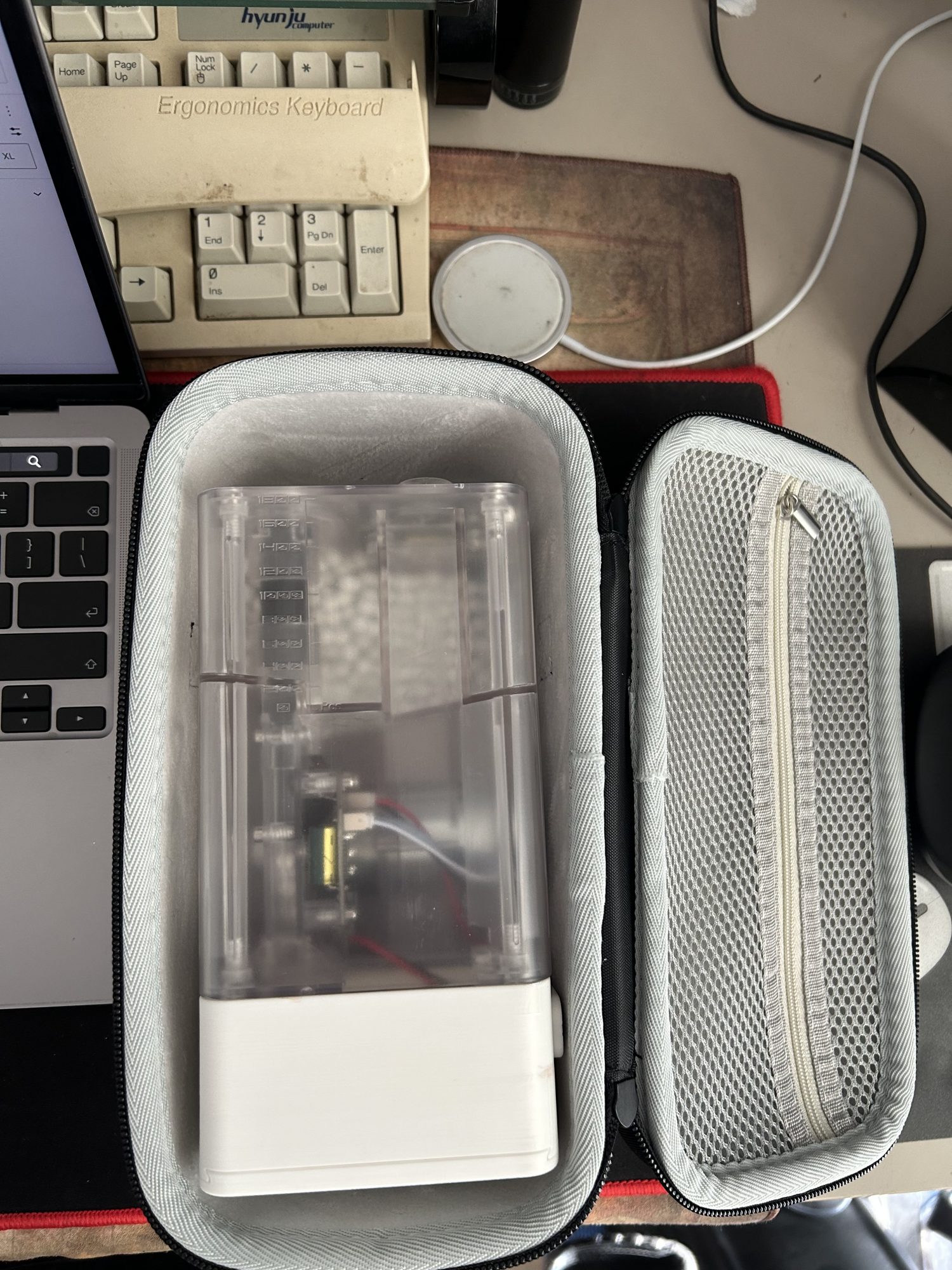왼쪽에 모니터 화면에 있는게 초기판이고, 내가 손에 들고있는게 내가 받은 것(후기형)이다. 사진 빨간 화살표로 표시된 은색 동그라미 위치가 살짝 달라진게 보이는가?