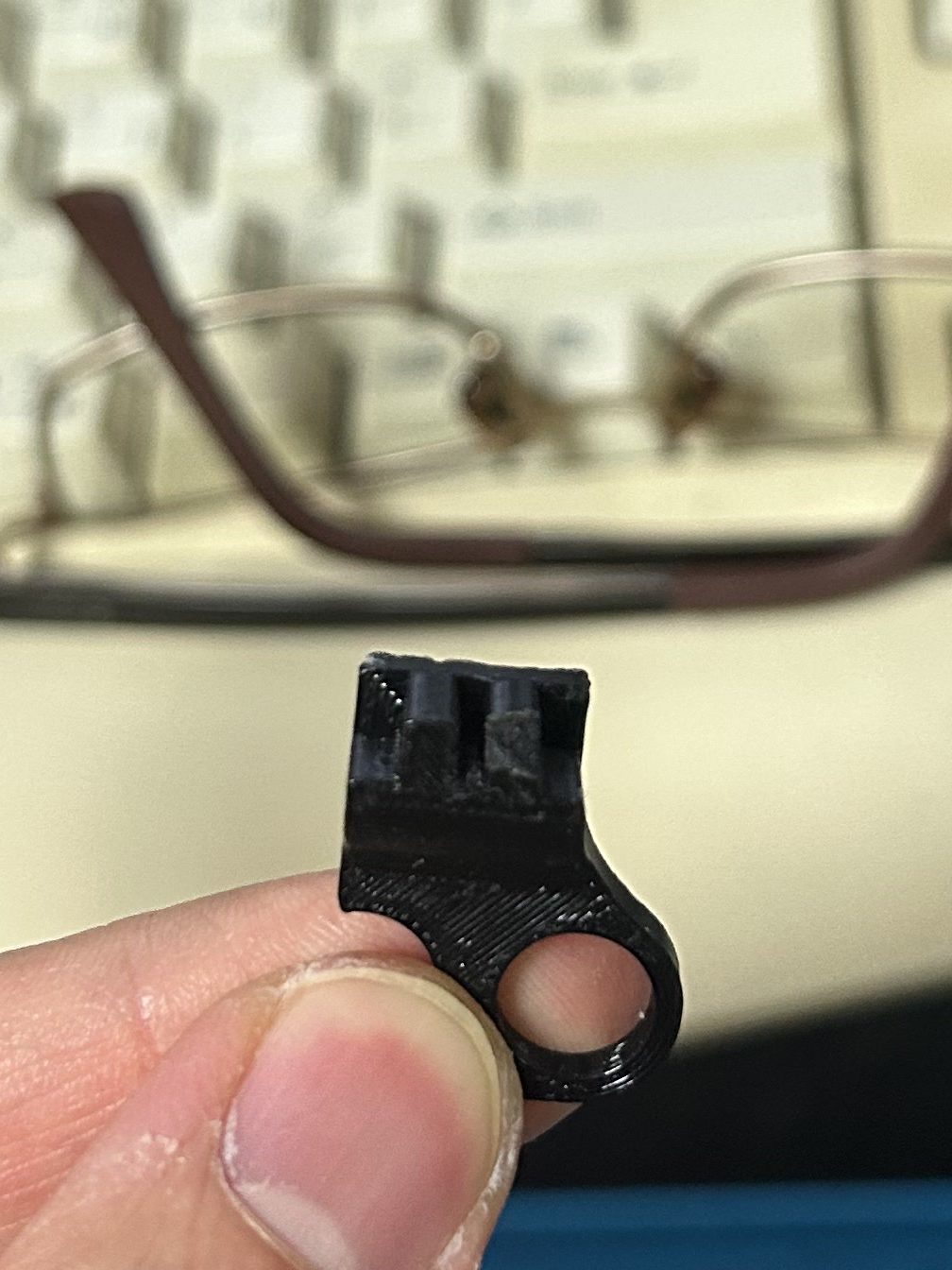 밀어서 구멍과 구멍이 정확히 정렬되었다. 그러나 눌러도 원래처럼 딱 맞게 들어가지 않고 뭔가 걸려서 들어가지 않았다.